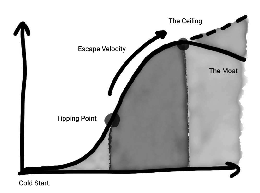 - The Cold Start Problem itself becomes the moat: once your network reaches critical mass, competitors have to solve the same bootstrapping challenge from a worse position